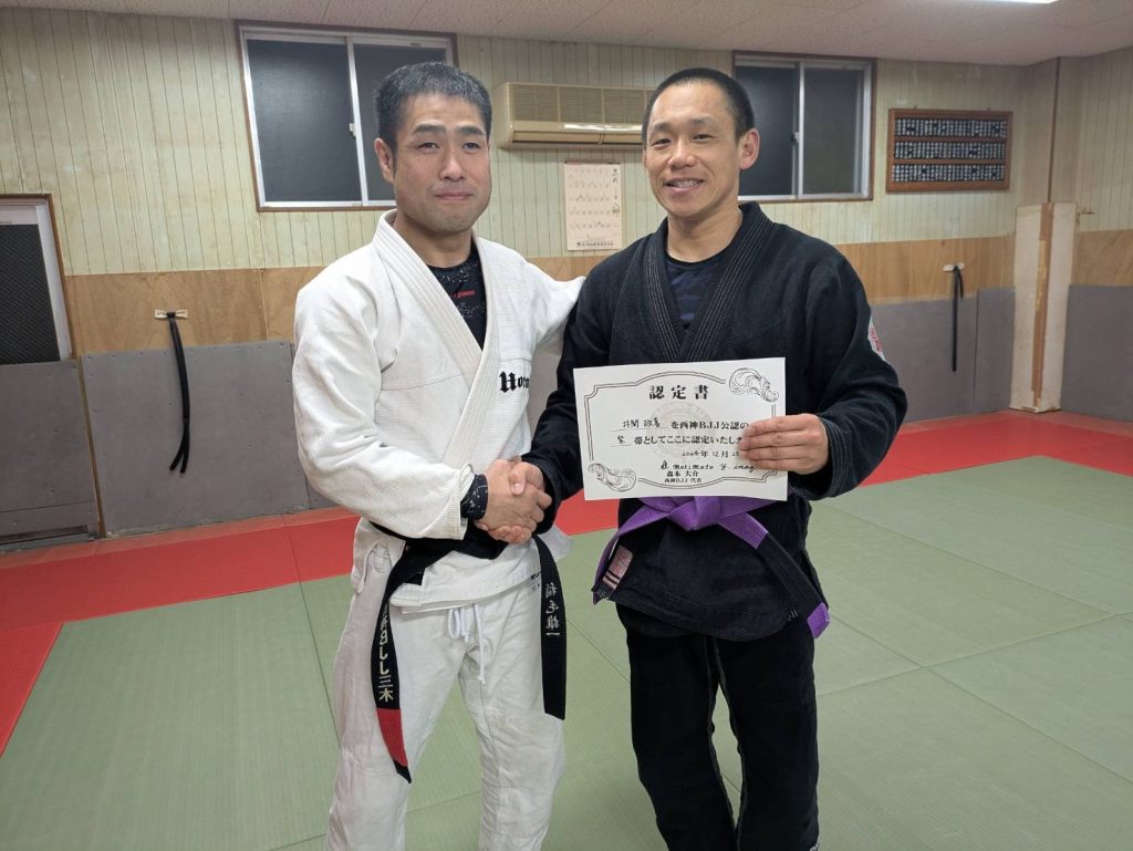 優勝して昇帯も考えましたが、それよりも紫帯になり、より高みを目指して欲しいと思い紫帯としました。